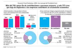 Mayoría apoya fin de contribuciones a personas mayores y 43% cree que baja de impuestos a empresas no ayudará a crecer.