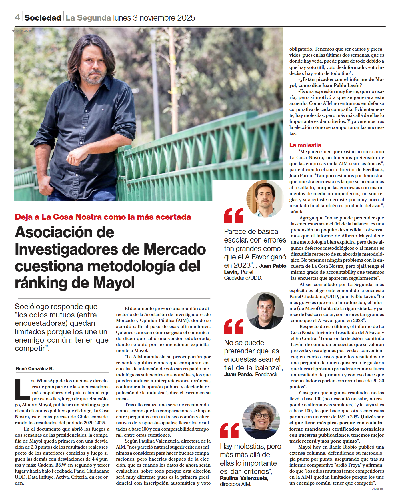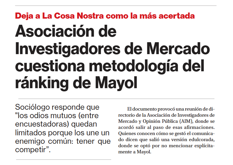 El informe deja a «La Cosa Nostra» como la encuesta más acertada. «La AIM manifiesta su preocupación por recientes publicaciones que comparan encuestas de intención de voto sin respaldo metodológico suficiente en sus análisis».