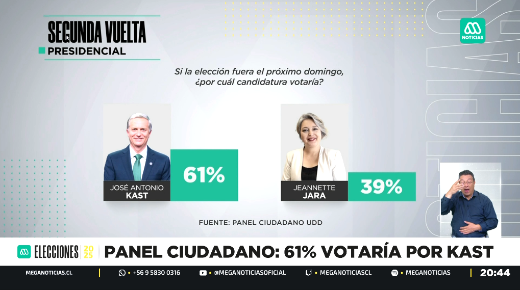 Primer sondeo de segunda vuelta presidencial: 61% votaría por Kast | 🔴Meganoticias Prime
