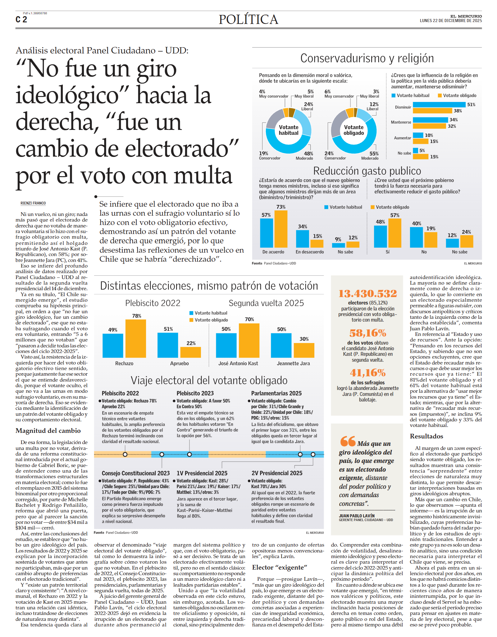 Personas que solían no votar antes de que se impusiera una multa, expresan una posición política más moderada y de derecha que quienes participan habitualmente en los comicios. Se trata de votantes distantes del poder político y con demandas asociadas a experiencias de inseguridad económica y desconfianza en el Estado.