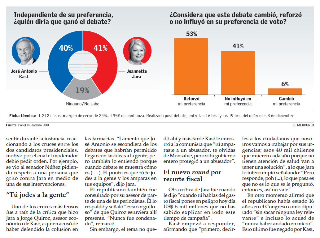 A 10 días del balotaje, la exministra optó por elevar el tono en una discusión enfrascada en ásperos cruces. Las críticas a Jorge Quiroz, asesor económico del abanderado opositor, por haber «defendido» la colusión de la farmacias, fue la carta más usada por la postulante oficialista.